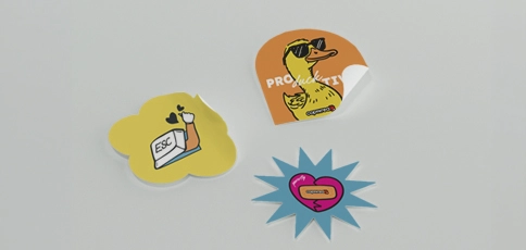 Sie können wählen, wie Sie Ihre Aufkleber erhalten: im Bogen oder einzeln. Die Bögen sind Blattgrößen (ähnlich A4) mit mehreren Aufklebern mit “Kiss‑Cut”, ideal wenn Sie sie nach Bedarf ablösen möchten. Entscheiden Sie sich für die Einzeloption, erhalten Sie jede Aufkleber bereits separat zugeschnitten und gebrauchsfertig.